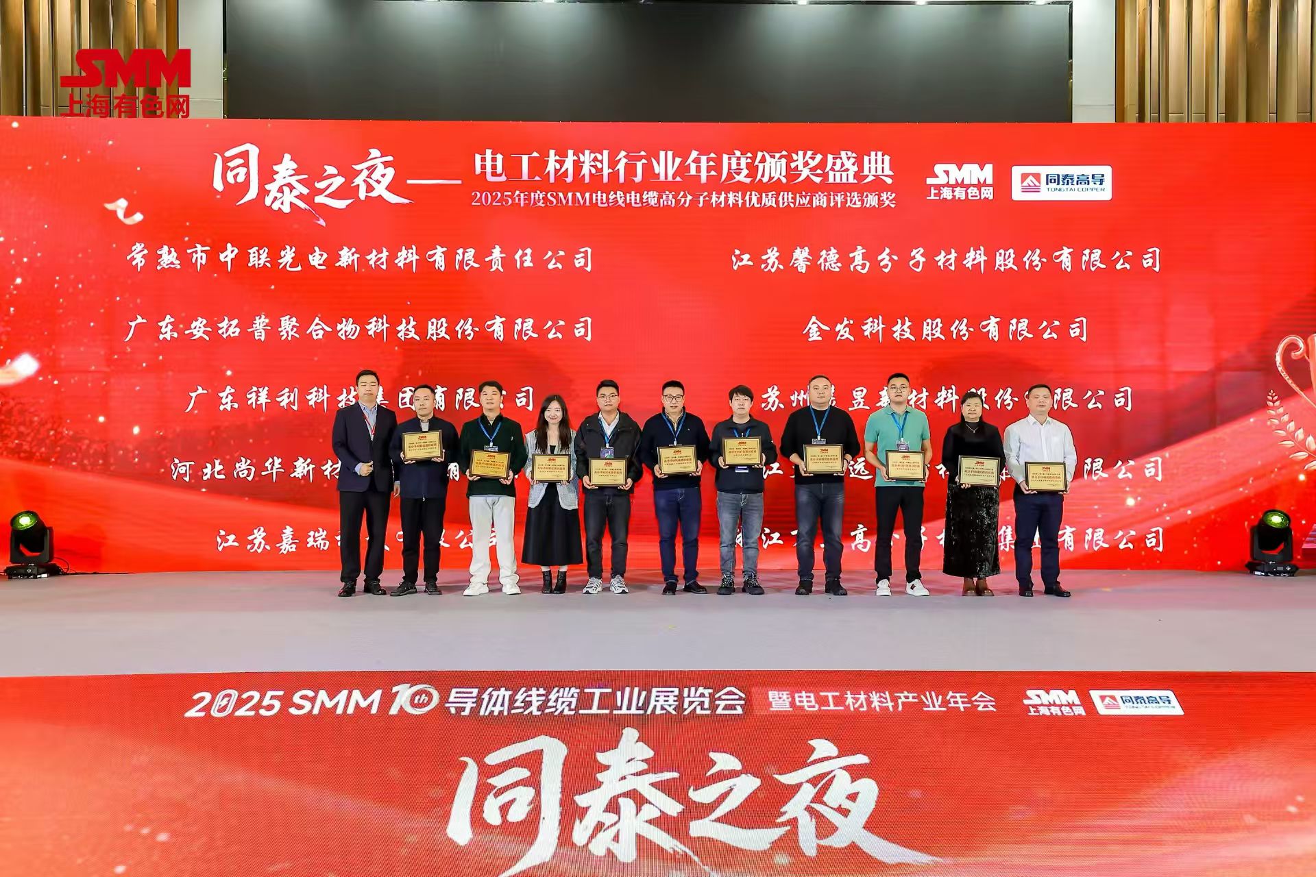 11月21中联光电荣膺2025年“中国电工材料...近日,在上海有色网(SMM)主办的“2025(第十届)导体线缆工业展览会暨电工材...