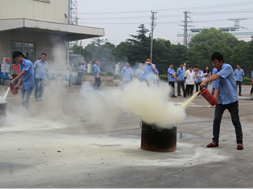 本次消防演练设消防安全工作基本常识培训、火灾扑救消防器材技能培训以及三公斤干粉灭火器油盆灭火比赛、团队2人二档消防栓出水比赛等四项议程。中联高分子交联部、高分子胶料部、金属拉丝、金属焊带共30多名员工参加演练。
